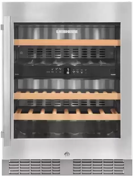 Винный шкаф Liebherr UWTes 1672 Vinidor в стальном корпусе может размещаться под столешницей благодаря высоте 82 см и ширине 60 см. Две температурные зоны позволяют раздельно выбирать условия для хранения различных сортов вин.